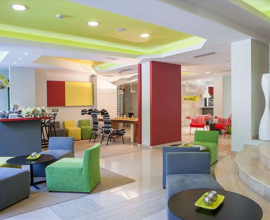 | lobby bar, hlavní restaurace snabídkou řeckých delikates a gurmetských pokrmů, italská a la carte restaurace Basilico, snack bar |