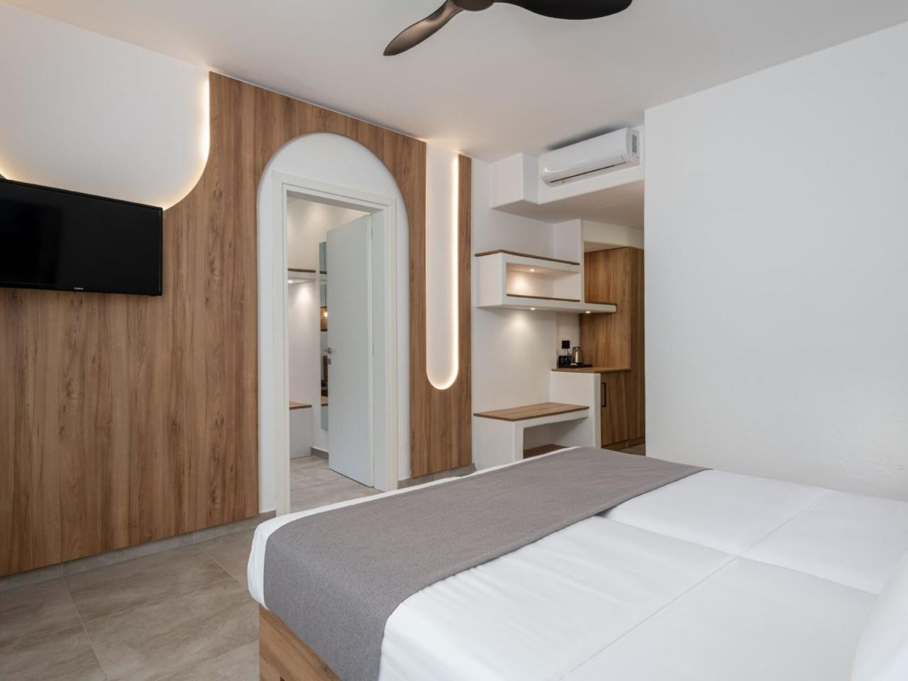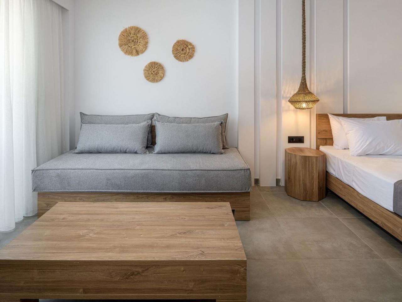 • přibližně 300 m od dlouhé písečné pláže Tigaki • písečná • lehátka za poplatek • slunečníky za poplatek • plážové osušky za poplatek |